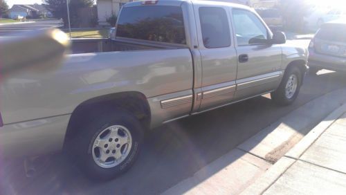 2002 Chevy Silverado LS extended cab. 4.8l V8, AT, PS, PW, PDL, cruise, tilt, CD. Pewter w/ charchoal interior. like new inside, never smoked in. paint in great shape, bed does have wear, scratches. Brand new Michelin tires, paid over $800. New shocks installed over a year ago. As of 1/6/14, truck has 141283 miles. All services done on time. Truck drves as it did when it was new. THIS IS A ONE-OWNER TRUCK! Bought new in 9/01. KBB lists for $7800. Price is somewhat firm. I don't need to sell, just want to buy an El Camino. All power accesories work, nothing missing or broken. Stereo works, speakers not blown, A/C blows COLD, no window leaks, water or air, New cabin filters last summer. Clean, nice truck. Cal 559-871-8452 for any questions. Thank you.