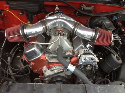 Motor: 1988 454 Chevy, bored .060 over. Flat top probe pistons, 9.5:1,Comp cam thumper cam .498 lift, comp valve springs, and roller rockers. Hirise single plane intake. 750 carb, New MSD 6al box, new pro billet distributor, new blaster coil, aluminum tall valve covers, new high flow aluminum water pump, new headman headers, new full duel racing cats, and racing mufflers, duel electric fans. Motor has 1700 miles since build. Tranny: factory tremic 5 speed from 454 SS, new clutch kit, new flywheel, new slave cylinder. Tranny was torn down and inspected and has new syncroes installed. Rearend: 10 bolt shortened, strange SS axles installed, all new bearings, new 4:11 gears, new limited slip, all new brakes around, new U joints, new 4 link frame kit, new heim joints, aluminum 15 gallon fuel cell with sending unit, new electric fuel pump, new aluminum fuel line, new bypass pressure regulator. Front End: has new 3 inch drop springs. I have a set of 2 inch spindles that go with it; just need to put them on. New front runner tires and prostar wheels. 3X21x15 Mickeys on the back. These are not new but have 3/4 tread. Just put on a $500.00 black truxedo tonneau cover Truck has 1700 miles on it since completed. Original odometer reads 142,076 miles. Has factory SS cowel hood. Interior is not the greatest. This truck is street legal. All lights and blinkers work. I have not raced this truck. Very dependable. Truck is a blast to drive and really turns heads. It could be raced with a few modifications. This truck is set up for street driving. |