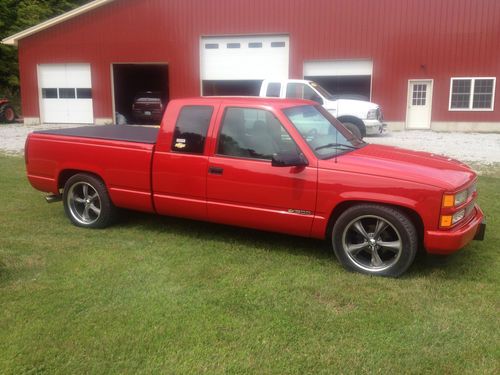 I have for sale a 1996 Chevrolet C1500 Silverado extended cab short bed, rear wheel drive Sport Truck. I purchased this truck down south a few years ago and have done many upgrades including: Lowered Bell Tech suspension, 20" Boss wheels with New Tires, Rear Differential gears (4:11) with Limited Slip, Flowmaster Exhaust, Hypertech programmer, Complete custom paint, and Low profile Tonneau cover. Truck has the original 5.7L, 350ci, V8 Engine, with 4L60E Auto trans which both work perfectly, Interior is mint, as is the Body. Needs absolutely nothing! Drive anywhere! Looks, Runs and Drives awesome! Hate to sell, but too many toys! Consider Car or Truck in trade, possibly 4WD ATV also.