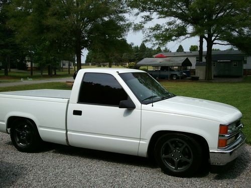 For sale 1991 chevy truck.with a 350 crate motor with 50,000 miles on it.350 automatic trans ps.pb pw cold ac and hot heat. custom front bumper. new grill new headlights.custom corvette wheels with nitto nt 450 tires fronts are 255/50r17 rears are 275/50r17.like new.custom interior new carpet and headliner door panels visors. kenwood radio cd reciver with a hart competition amp ht600-4 with a12 inch kome audio sub woofer and kenwood speakers in dash.tinted windows.spray in bed liner custom bed cover.hidden hitch new dual flowmasters truck is lowered with a bell teck system adjustible rear shocks truck is professionalbuilt drives and rides great. non smoker audlt driven/owened no dents or scratches always serviced at 3,000 miles.