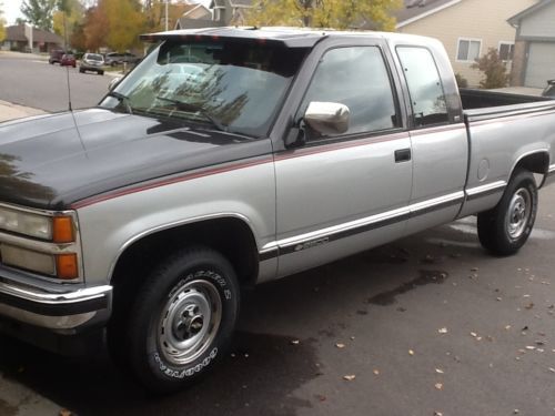 1991 Chevrolet Silverado extended cab 2500 4+4 with 93000 original miles and one owner. Truck was purchased new in Denver from a family member. Truck has never been in an accident, and is in excellent condition for a 1991. The truck was not garaged so the paint was faded and had some factory peeling. What I did to the truck: Stripped and painted truck complete with very high quality paint job back to original colors New windshield New side mouldings and wheel wheel mldgs New goodyear tires New bedliner Air conditioning recharged Truck is in great condition it does have a very minor oil pan gasket leak, a couple small burn spot in carpet which is covered with the floor mats and dome light cover is missing. Any qestions please call or email me. Thanks Steve 720-984-9097 |