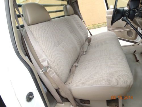 ONE OF ITS KIND VERY RARE ON THE MARKET CUSTOM FLAT BED SIZE (10 FOOT LONG-8 FOOT WIDE - 1 FOOT FENCE AROUND) 1 OWNER TX RUST FREE 1998 CHEVY SILVERADO 3500 SINGLE CAB DUALLY WITH V8 7.4L GAS ENGINE VERY POWERFUL; 2WD MANUAL TRANSMISSION; ORIGINAL ALUMINUM WHEELS AND OK TIRES, ORIGINAL AM/FM RADIO. MECHANICALY SOUND. ENGINE IS IN STRONG MECHANICAL CONDITION, STARTS RIGHT AWAY, DOES NOT SHAKE WHILE WORKING, DOES NOT MAKE ANY NOISES, DOES NOT LEAK, DOES NOT SMOKES. TRANSMISSION SHIFT GREAT, CLUTCH IS IN STRONG CONDITION. THIS CHEVY IS IN GREAT CONDITION, LOOKS GREAT, ORIGINAL PAINT LOOKS GREAT, CLEAN, NO RUST ON THE BODY AND UNDER THE TRUCK. INTERIOR LOOKS GREAT AS WELL. CLOTH SEATS LIKE NEW CONDITION. VINYL CARPET IS CLEAN. MANUAL WINDOWS, MIRRORS, DOOR LOCKS, POWER STEERING. THIS CHEVY SILVERADO HAS CUSTOM 10 FOOT LONG FLAT BED. THIS TRUCK IS LOADED AND WILL BE GREAT BUY. THIS CHEVY HAS CLEAN TITLE AND CLEAN CARFAX. THIS CHEVY SILVERADO 3500 HD HAS LOW MILES: 112K. EXCELLENT SHAPE, DRIVES GREAT, READY TO WORK. IN-STATE BUYERS WILL HAVE TO PAY STATE SALES TAX 6.25%, TITLE APPLICATION AND VEHICLE REGISTRATION FEE, IN-STATE AND OUT-OF STATE BUYERS WILL HAVE TO PAY VEHICLE INVENTORY TAX FOR EACH $1000 - $2.23 AND DOCUMENTARY FEE OF $100. IF YOU HAVE ANY QUESTIONS YOU CAN CALL ME AT 972 598-2988 WE PROVIDE PICK UP FROM THE AIRPORT. WE CAN GET QUOTE FOR VEHICLE TRANSPORTATION. |