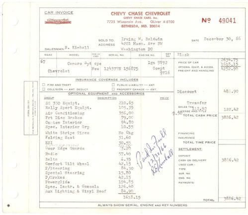 1967 Chevrolet Camaro Rs Ss 350 (rally Sport, Super Sport) Original Triple Black on 2040-cars