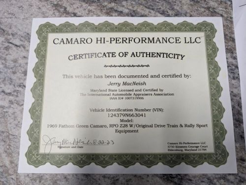 1969 Chevrolet Camaro Macneish Certified Z28 Rs on 2040-cars