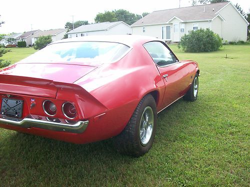 1971 Chevrolet Camaro, 406 S.B. 500 H.P. Let me start off by saying, if your looking for a Barrett Jackson show car than this isnt the car for you. This Camaro is a nice car to take to the local car cruises and to drive around and have fun with. Car came from Florida and has been in Michigan for 5 years. It has always been garage kept. Overall this Camaro is very solid. The paint is not perfect it has some chips and scratches here and there. I have owned alot of classic cars over the years and would rate the paint on this car about a 7 out of 10. Car is powered by a 406 small block with solid lift cam, camel back heads, Edelbrock aluminum air gap intake, Holley 650 carb, Hooker super comp headers with 3" exhaust and Warlock racing mufflers. Rear end is a 10 bolt with 488 gears. Transmission is a 350 turbo with a manual valve body and a B/M shifter. 16 gal fuel cell. 8x15 Rallys on the rear with 7x15 Rallys on the front mounted on B.F. goodrich tires. Interior has Bomz racing seats, no rear seats. Car has back half caged, the front bars have been cut out. All lights and turn signals work fine. There are no wipers or heater. Like I said before this isnt a show car but it is a nice street car thats perfect for the local car cruises. If your looking for a car to turn heads when you pull into the parking lot of your local bar or burger joint than this is your car. This 406 sounds awesome and the Warlock mufflers make this car really come alive when uncorked. Overall this is a great little car, the only issue I am having with it is that sometimes the trans doesnt shift into second when going through the gears. This may be an easy fix or even a linkage issue I really dont know. I am going to leave that up to the new owner. The motor in this car is very strong and sounds awesome. I can send a video through text if anybody is interested in hearing the car run, just send me your cell number. Feel free to ask any questions. Car is being sold as is with no warranty. Winning bidder is responsible for pickup or shipping of car. A 500 dollar deposit is required with in 24 hours of auction ending and full payment is due in 7 days. Dont miss out on this great little 1971 Camaro, bid to win. Thanks for looking and good luck bidding !!!