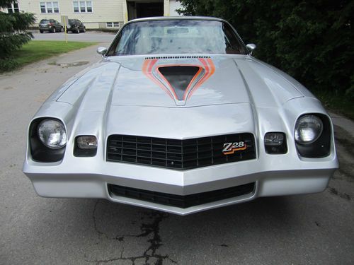 Up for auction is a clean 1978 Z28. Was an A/C equipped car but compressor has been removed. Really nice paint that shows very well. Decals have a few imperfections. I am not sure if block is original to the car. Engine is equipped with double hump heads( dont know valve size) Holley carburetor with an Edelbrock intake. Headers and exhaust which dumps in front of rear axle. Sounds great. Shift kit in transmission. Car runs well and will be NYS inspected prior to delivery.