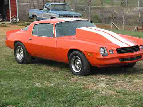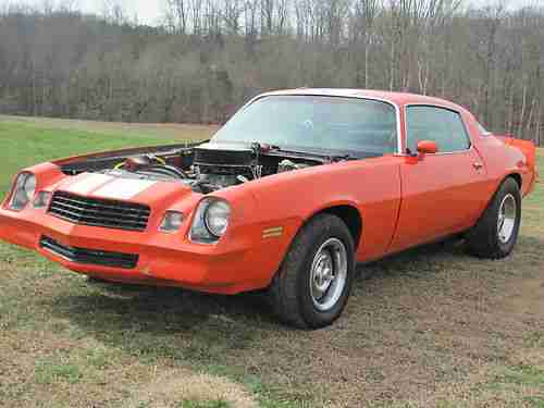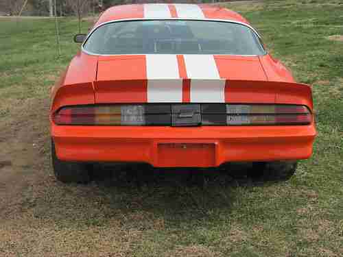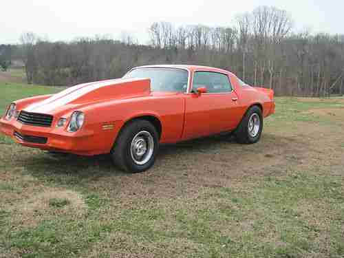 This car has a tag registration only. Before I bought it, I called to courthouse where the car was located and I called my county courthouse. In both states, I was told all I needed was a notorized bill of sale and the tag registration, since the car is over 30 years old. I bought the car for my son to be a collector, but it was more than I bargined for! LOL. This car is in great shape! It has a 9" cowl hood, Mickey Thompson street slicks, corvettte rally wheels with spinners, 7 gallon fuel cell in the trunk, a wet line kit.This car looks sharp! The paint has some knicks and scratches but nothing serious. The car is set up to race, so the interior is stripped down but the pieces are there to be put back together, or some to be replaced. It has a built 355 small block engine with a two speed power glide transmission with ratchet shifter and stall convertor with a 456 rear end. This car is built to race! This 1979 Camaro sounds like a Nascar and is very fast!!