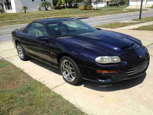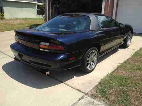99 Camaro Z28 LS1 T56 Navy metallic blue 101xxx miles nice leather 2 tone power seats no rips. Original carpet clean and in good shape Dash and headliner in great shape. 6 month old clutch. Chrome Z06 corvette wheels (slight pitting,Needs tires) tires are all evenly worn down to wear indicators, BBK Ceramic coated headers and Borla exhaust. Welded in sub frame connectors, T tops. Power windows and locks mirrors, everything works. Heat A/C blows cold. Ram Air functional hood. Original paint(starting to fade on top surfaces, but not to bad). Cruise control and keyless remote are there but not working. Check engine light is on due to skip shift eliminated and 2 of the 4 O2 sensors have been removed because of the headers. Small drip from a power steering line and rear diff. Speedo seems to be off by a few mph. A section of The front bumper and styrofoam between the bumper and cover are missing(does not affect anything and cant tell by looking at it) Runs drives great. Rob 4079636150 This car is located in Orlando Fl. 32809