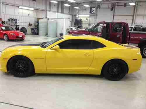 This is a built 540 H.P. Edelbrock Supercharged 2010 Camaro 2SS in Rally Yellow with ForgeStar black wheels. This car has been done right, close to $20,000 with of work done to the engine, chassis and computer system. It has an Eldelbrock Eaton Gen VI 2300 TVS supercharger with the programer. It has 72lb injectors, twin fuel pumps, and also it has been tuned and dyno-ed as well, I have some print outs for the car as well. It has a cam in stalled in the engine as well as FTI TQ converter installed. It has Pacesetter longtube headers and low profile cut-outs on the exhaust as well. They have also put a lot of money in the suspension, it has had the trailing arms, sway bar, rear end bushings, and it has been lowered as well. It has Pedders adjustable coilovers on all 4 coners of the car. They have put ForgeStar Black Wheels on the car. It has a Hurst Comp Harddrive stick kit in it as well. This car has been been done by guys at the Cincy Speed shop. The carfax is clean and has a good history, all work has been done by the last owner, he traded it in to us for a custom car that we built for him. This car made well over 600 H.P. when they had it in the shop doing the work, they have de-tuned it for the street. Please let me know if you have any question or would like any other pictures.