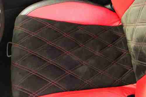 - Custom leather/suede seats featuring diamond stitch seating areas