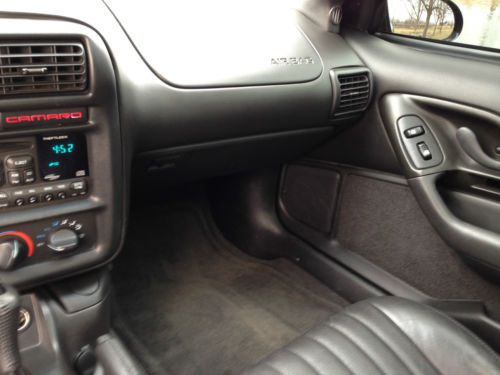 This car has the SLP package, which includes split spoke wheels, wider tires, more aggressive hood, and the ultra-rare center-mount exhaust with SLP muffler T-tops This car is a perfect example of what a well taken care of 4th gen should look like Automatic trans -- shifts great 2-owner vehicle Just rolled over 68k miles on it -- low miles ! As you probably know, these cars are getting hard to find in good shape This Camaro is 100% stock and has no aftermarket mods to it with the exception of the SLP package which was factory installed -Two brand new tires on the rear(less than 300 miles ago), fronts are in great shape -Brakes recently done -Fresh oil change -Body is in fantastic shape, no dents or dings -No rust -Full leather interior -12-disc hatch-mounted CD changer -NO DASH WARP OR DOOR CRACKS -- very rare on these cars The pictures speak for themselves. This car is truly in fantastic shape and you must see it to truly appreciate it. |