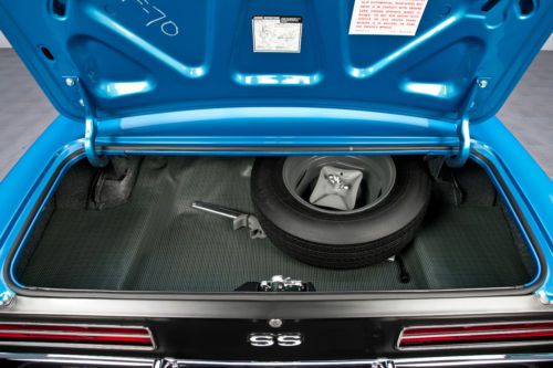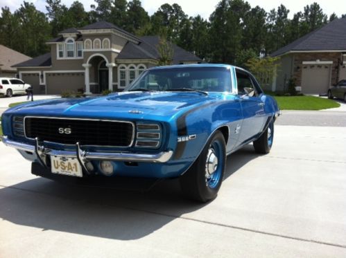 If you have been searching for a perfect 1969 Camaro then your search is over. This Camaro is a X22 RS SS L89 Camaro that has been completely restored and now has been fully sorted with just over 1200 miles since the restoration. It has the correct GM code 71 Lemans Blue paint that was expertly applied that has a great gloss and no chips or marks of any kind and is set off with the black hockey stripes. The chrome and stainless all shine as new. Also the front and rear bumper guards add the final bit of bling. It looks great with the D80 spoiler package. The correct 711 black standard interior is new. All the gauges have been restored just like everything on the car. Under the hood is a 375hp 396 with the very rare L89 aluminum heads that are fed by the correct Winters aluminum intake manifold. All of the smog equipment is present as are the spark plug heat shields. The drive train is date code correct but not numbers matching. Every inspection mark and sticker is present under the hood and throughout the car. The tires on the car are reproduction F70x15 Goodyear that were only available when the L89 engine was ordered. The tire in the trunk is an original F70 Goodyear date coded 12 of 1968. The hubcaps are the correct poverty dog dish caps. Everything on the car works as new and looks just like it rolled of the M&O Chevrolet showroom floor in Fayetteville, North Carolina back in March of 1969. It has won best of show or best in class at every show that we have entered it in. I looked long and hard for a good show car, found it and worked the bugs out and now you can drive it anywhere and win at any show you enter. If this car was a numbers matching car with verifiable documented paperwork the reserve price would be twice of what I have set it at. Good luck bidding and bid to win, you won't find a better one. I had to relist this beautiful Camaro due to the winning bidder changing his mind after he won the auction and told his wife. The only reason for the sale is that I'm out of room. I'm seriously open to a serious and reasonable offer. Please ask any questions before bidding. You can call me at (386)517-8114 and I would be more than happy to answer any questions about my Camaro. Thanks for looking and good luck bidding Gene. Vin # 124379N591931 1-Chevrolet Motor Division 2-Camaro 4-8-cylinder engine 37-coupe 9-1969 model year N- Assembled at GM's Norwood, Ohio plant 591931-serial sequence number TRIM TAG 69-1969 model year 12437-1:Chevrolet,2: Camaro, 4: Fixed digit,37: Hardtop NOR Assembled at GM's Norwood, Ohio plant 249865- Fisher body number 711-Standard, black interior with bucket seats 71- Lemans blue paint 02A- Assembled during the first week of February, 1969 X22- Camaro Super Sport that's equipped with a 396 cubic inch V8 |