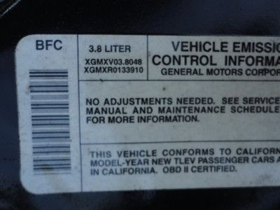 Engine:3.8L 3800CC 231Cu. In. V6 GAS OHV Naturally Aspirated