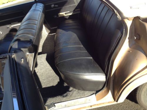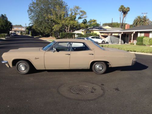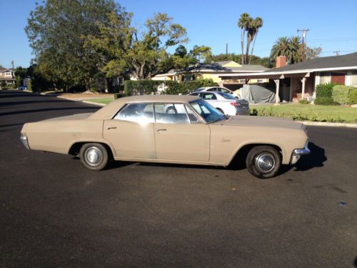 Interior It has new seats, new headliner, new carpet, new visors, door panels have been restored, has the original AM radio, all original gauges, original steering wheel, All gauges function properly. Inter fan works, Heater works, Ac needs a new belt and to be recharged. The trunk is clean, recently painted with undercoating dyed to match the exterior color. I have $2175 in new interior work, I have all the receipts on the interior work. Engine: Engine is a 283 v8, with a 2 speed auto trans, upgraded 4 bbl carb, rebuilt alternator, new mastercylinder, almost of the vacumme lines have been replaced, Factory dual exhaust, recent oil and filter change, radiator was replaced about a year ago, new powersteering pump with life time warranty, Radiator hoses and water pump were replaced when radiator was replaced. Car starts right up, runs very well, a few months ago we drove it from orange county to Mammoth and back with no issues. About 3 weeks ago I drove it from Tustin to the Staples center every day for 5 days with no issues. Car does not over heat, even in hot CA weather in stop and go traffic. Car gets between 15-17 Miles per gallon depending on how you drive it and conditions. The car does not smoke except a tiny bit when it sits for a week or longer, and goes away after about 30 seconds. I was told the engine has about 50k miles since it was rebuilt, i was told that was about 10 years ago, I was not given any receipts so can not verify this, I was told it has a slightly mild cam installed in it when it was rebuilt, For a large car with a 283 it moves very well. I would recommend some new mufflers and exhaust sometime in the future, It does have some very small exhaust leaks in the pipes, You may be able to just weld them up. You dont really hear the leak, but if you stick your head under the car when its running you have slightly hear it if your listening for it. I have been driving it this way for a while now, never bothered me, Im just trying to make sure I tell everything I know about the car. Exterior: Outside is painted flat brown, Almost all the chrome trim and emblems are off the car ( I do have them, they are all in the trunk and go with the car), it has no major body damage, it does have a couple of small dings, nothing major, body is clean and pretty much straight except for the couple of dings I mentioned. It does have a bit of rust by the right lower corner of the rear window. All the body pannels line up and everything opens and closes smoothly. Grill is straight and has all the chrome pieces on the car, could use a polishing. both bumpers appear straight, front would look very good with a bit of polish, rear has some light surface rust on it, I was planning on painting the bumpers the same color as the car one day so I didnt really mind the condition of the chrome. All lights front and rear work. This car being the Impala with the Caprice luxury package came with a few more chrome pieces than the standard Impala, I believed all the pieces are there and in decent condition. It also has the original hub baps with little to no road rash or dents. Car is being sold as is where is. If you need the car shipped its up to you to arrange for shipping, Car must be paid for in full before I will release it. |