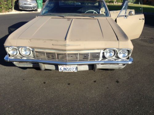 I am selling a 1965 Chevrolet Impala- V8, Auto trans, A/c, caprice luxury option (This is not a caprice model, In 1965 caprice was a luxury option not its own models, 1966 was the first year the caprice was its own model). I have the title in hand and it is a clean title. If you want to see the car before bidding please let me know, I am more than happy to show it. I bought this as a driving project, to tinker with and restore but could drive at the same time, but I am working 2 jobs and have too many cars so decided to let this one go, Its been fun car to have and drive, gets a lot of attention when going down the road. With a good paint job it would be a very clean show/classic car, or it can be used as a reliable transportation & family car. It has a nice smooth ride to it, even with 4 people in the car. Goes down the road straight, No strange noises or vibrations, quiet inside. Comes with original Owners manual