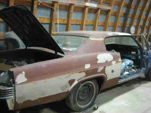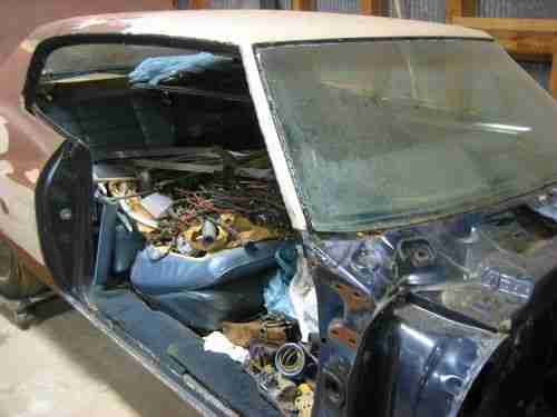 This 1966 Caprice sport coupe was loaded with all the options from the factory ,, 396/325hp, 400 automatic, a/c,ps,pb, power windows, power drivers side bucket seat, factory tachometer, console gauges, and the VERY rare telescopic tilt steering wheel option, am/fm radio rear defrost and wire wheel covers, paint code EE Danube blue with light met blue interior ,,, car is complete minus the engine block and transmission , I do have the upper half of the engine ,,the closed chambered heads which have been redone and the factory Holley carb and intake ,,, lots and lots of new and NOS parts are scattered about through the trunk and inside of the car this car will need a complete restoration or can be used for parts,, we do have all the dealer papers on this car,,it was purchased at our local dealership .. the passenger door is missing but do have all the glass,, the front radiator support and inner fender skirts are gone we do have the front fenders and the hood,, the car is a roller have all the a/c parts firewall an inside parts the inside rear door panels are still in nice original condition,, have a good dash pad,, new carpet, headliner is new in the box,, had the instrument cluster bezel rechromed by MR. G's in texas ,, all the weatherstrip is new have all new emblems ,, a NOS set of big block tailpipes with the resonators ,,, the bucket seats and rear seat are still in very nice condition ,,, have extra console , the bumpers are missing do have a NOS set of wheel opening moldings ,, as far as rust out there is only 2 spots one on the very lower rear right hand side quarter panel and a very small spot on the bottom left lower back window area the trunk an floor boards are still solid,, there has been lots of $$$ spent on parts this would be a good oppertunity for someone that is looking for a factory big block 66 full size to restore or for someone that is wanting to add lots of options to his Impala SS or Caprice restoration the choice is yours our loss on this long forgotten project is your gain buyer is responsible for the shipping will try to answer any questions that you have please call no e-mails 501-516-7710 my name Is Jon....thanks for looking ....