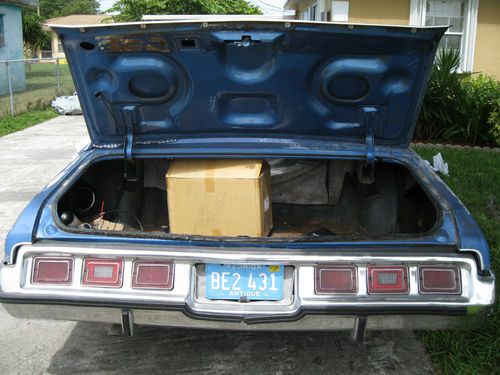 1973 Caprice Classic Convertible...Purchased this car from a paint shop in May..Car was in the process of being stripped for paint..Solid car small areas need metal/patch work on rear quarter panels..The floors were patched by previous owner but not done correctly ..Trunk solid no holes just surface rust..Convertible Top works but needs an up/down switch..Power windows all work..Power seat..Original 454 car..New door handles not installed..Brand new battery($220)..Cranks, runs, drives with no issues..Car has headers with dual exhaust , sounds real nice & smooth..Lots of power..Missing driver rear view..Purchased a NOS passenger rear view(eBay for $100)..Purchased new door hinges & bolts($220 eBay)..Purchased NOS Caprice Roof Rail emblems($200 ebay)..This car is an easy solid fix for someone not looking to spend 12,000-15,000 on a convertible..Title in my name..Will assist with shipping if needed..Serious inquiries email me with any questions..NO TRADES