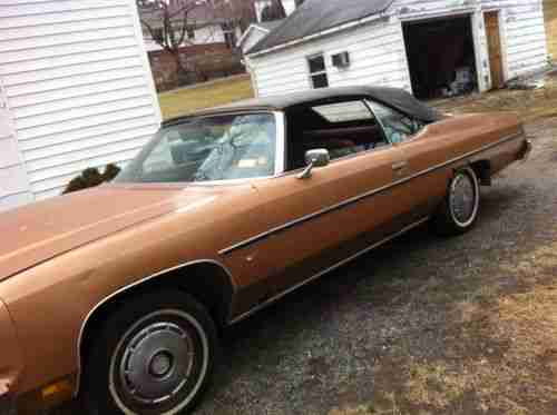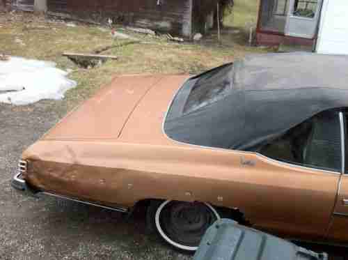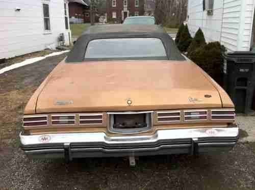 You are Bidding on a very nice 1975 chevy caprice convertiblele, it has 64k miles on the engine, it runs and drive excellent no problems what so ever. I am the second owner. I purchased it in 2010 in hopes to put a little work into it and make my summer sunday ride Since then I put about $3000 into it almost everything under the hood is new I have all the receipts also. However it needs some miner body work to complete. It was a summer only car never seen snow or salt, very little rust. truck is solid floors are solid its in great shape, the top works, windows roll fine, original radio work as well, it hans not been on the road since 1990. it has been Garaged sinced then till now, got into a fender bender the owner parked it in hopes to fix it and it never hhappended, with that being said if you still have questionsons feel free to ask.
