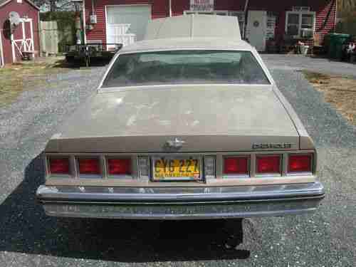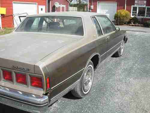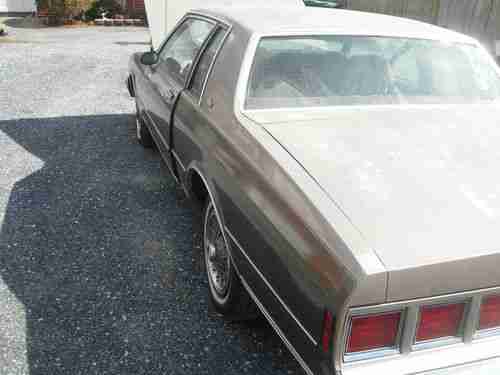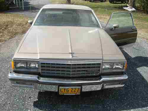 This 1984 Chev. Caprice Coupe is fully equipt including R12 A/C and original sound system. All power windows and seats work as does the radio. The chrome ,grill , and wheel covers are in very good condition. The interior is in exceptional shape for the year of vehicle EXCEPT for the headliner and visors which need to be replaced.Tthis car runs and drives well .ut has been stored since 2010 and could stand a tune up and NEEDS exhaust work (muffler). Vehicle being sold AS IS to Paypal buyers only with good feedback. Buyer is responsibile for pickup, We will assist if possible. $500.00 deposit at end of auction via PayPal and the balance within 48 Hours. Please note small dent in roof panel and a tear in the right rear bumper filler panel. ALL clear coat on tan paint is bad,pleasee study pictures closle.