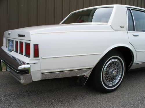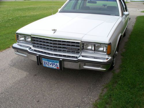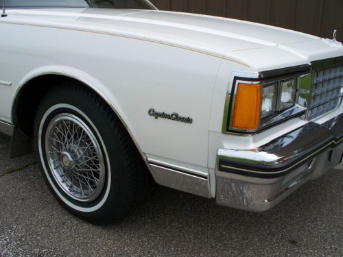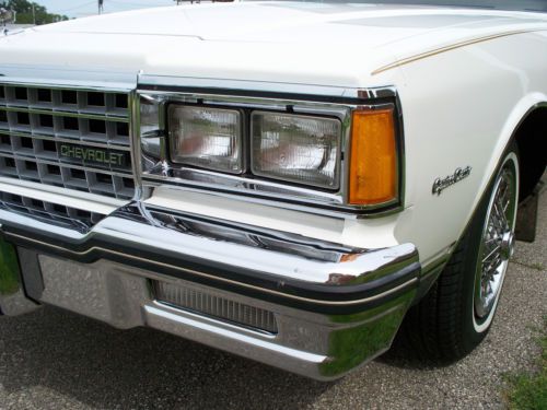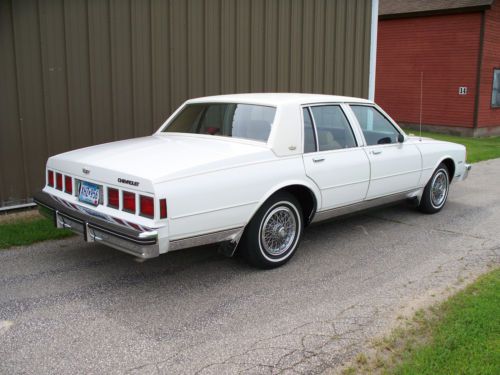 For sale is a 1985 Caprice Classic. The car has recent white paint on a rust free western body. The interior is a light tan velour fabric. The seats are new with no wear and the carpet is also new.The engine bay is very clean and the car runs like new. The car has power seats, windows, locks, brakes and a/c. The a/c works well but needs recharging to be cold. The tires are new . I added new wheel well moldings, grille, headlight bezels, lower body moldings and pinstriping when the painting was finished.This car has never seen salty roads and the trunk still looks new also. The photos show how nice this car is. Questions answered at 1-507-437-8416 or by e-Bay e-mail.