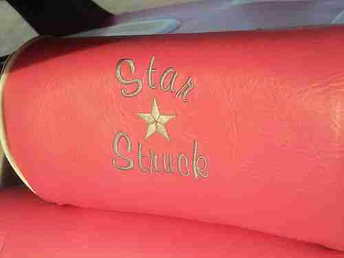 - PINK AND GREY LEATHER SEATS WITH ENCRUSTED STARS