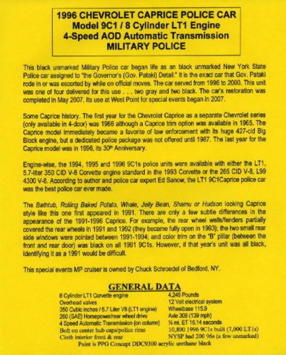1996 Chevy Caprice Classic, 9c1, Former Ny State Police Car, Governor's Car,mint on 2040-cars