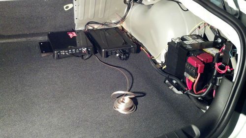 Installed in this vehicle (see pics, mounted below the climate controls in dash) is a JVC CD/MP3/IPOD BLUETOOTH STEREO WITH REMOTE CONTROL, MICROPHONE AND FULL BLUETOOTH PHONE INTREGRATION AND STREAMING AUDIO. 4 NEW SONY 6.5 INCH DOOR SPEAKERS, 4 CHANNEL 50 WATT PER CHANNEL CLARION AMPLIFIER, KICKER SOLO BARIC 12" SUBWOOFER WITH SEPERATE CERWIN VEGA 500 WATT MONO AMPLIFIER.