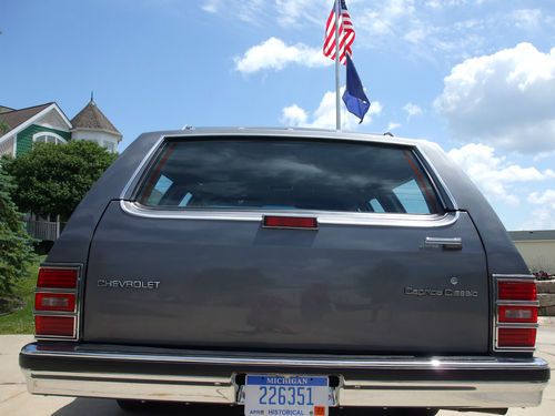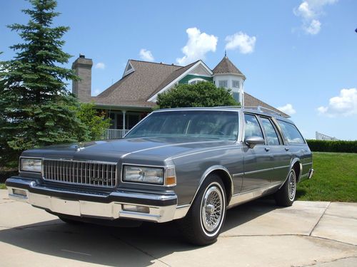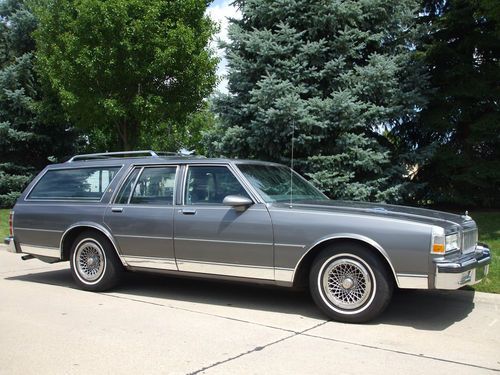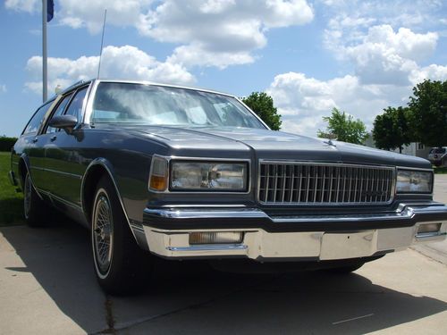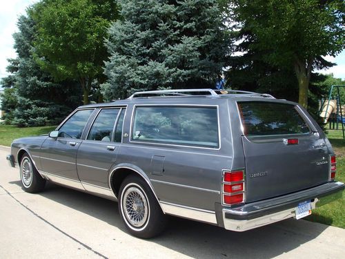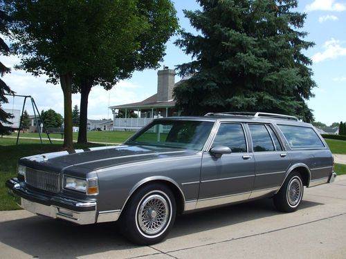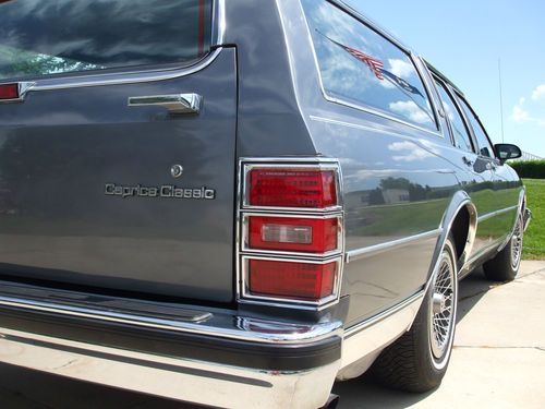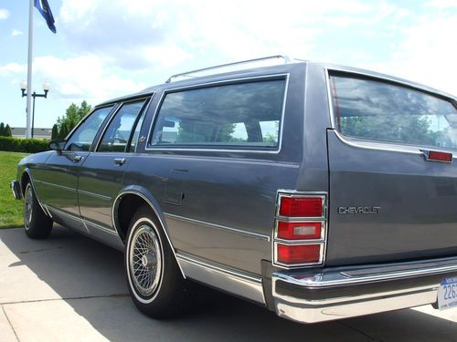 HELLO UP FOR BID IS OUR BEAUTIFUL 1987 CHEVY CAPRICE CLASSIC WAGON WITH GUARENTEED DOCUMENTED MILES THAT READ 19,812 THIS AMAZING WAGON IS ONE OF THE CLEANEST ON THE PLANET! THIS WAS A SPECIAL ORDER WAGON THAT IS LOADED WITH ALL OPTIONS, THE MOTOR RUNS LIKE THE DAY IT WAS DELIVERED! THE AIR BLOWS ICE COLD, EVERYTHING WORKS LIKE NEW! THE INTERIOR IS AMAZING, WITH NO WEAR AT ALL, NO RIPS OR TEARS, LOOKS LIKE NO ONE EVER SAT IN BACK SEATS, THE HEADLINER LOOKS BRAND NEW, THE DASH IS PERFECT WITH NO WEAR OR TEAR, ALL GLASS IS PERFECT, WITH NO CHIPS OR CRACKS ANYWHERE, ALL CHROME IS LIKE BRAND NEW, THE BODY LINES ARE LASER STRAIGHT , THE PAINT LOOKS AS THOUGH IT JUST ROLLED OF THE ASSEMBLY LINE, WITH NO DINGS OR SCRATCHES ANYWHERE, THIS CLASSIC WAGON HAS BEEN PROFESSIONALLY STORED IN HEATED GARAGE, THAT HAS NEVER SEEN RAIN, SALT, OR SNOW, EVER! THIS IS A MUST SEE CLASSIC WAGON! THE TIRES ARE LIKE BRAND NEW, THIS BEAUTIFUL WAGON DRIVES LIKE THE DAY IT WAS PICKED UP AT LOCAL CHEVY DEALER, WE HAVE ALL SERVICE RECORDS, THE ORIGNAL WINDOW STICKER, THE ORIGNAL BILL OF SALE, ALONG WITH THE ORIGNAL OWNERS MANUEL, AND THE SALES BROCHER, BUILD SHEET, PROTECTO- PLATE, THIS AMAZING WAGON HAS A VERY WELL DOCUMENTED HISTORY FROM THE VERY DAY IT WAS DELIVERED, ANY AND ALL MAINTAINCE WAS DONE BY LOCAL CHEVY DEALER, FROM DAY ONE!