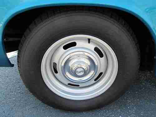 IT HAS A FILL COMPLETE SET OF CHEVROLET VINTAGE STYLE RALLY WHEELS WRAPPED WITH A NEWER SET OF UNIROYAL TIGER PAW TIRES. ALL TIRES AND WHEELS ARE IN EXCELLENT CONDITION.