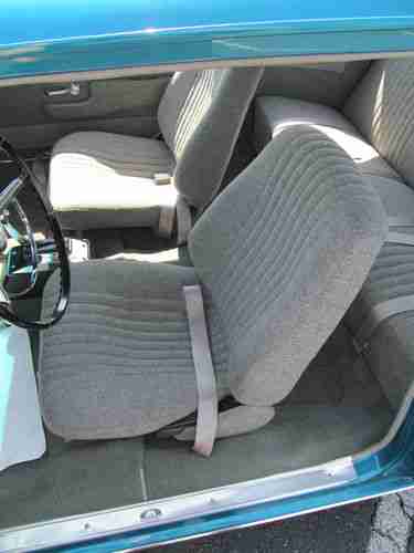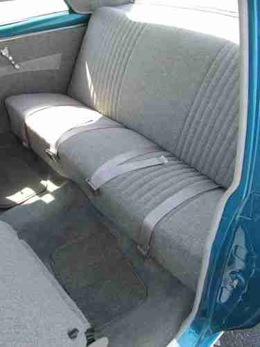 THE INTERIOR IS TOTALLY RESTORED AND IN GREAT CONDITION. IT COMES WITH TWEED FABRIC INTERIOR IN FRONT AND BACK. THE FABRIC IS A NATURAL TWEED GRAY COLOR AND GOES GREAT WITH THIS VEHICLE. THE CARPET IS GREAY MATCHING WITH INTERIOR DASH AND TRIM PAINTED TO MATCH THE EXTERIOR BLUE.