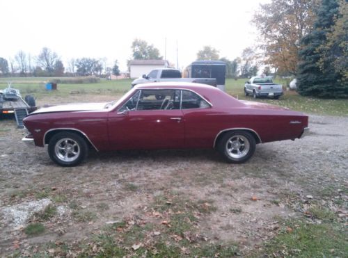 Here we have a very nice 1966 Chevelle. The motor is a small block chevy 400 bored .030 over making it a 406 cu. It has a nice cam shaft and aluminum Edelbrock Clyinder heads. Holley 700 cfm Carb. The transmission is a t-10 4 speed. The rear axle has a alburn posi unit with a 3:55 gear. Has rear drum brakes and front disc. New rear springs and new front springs. Front end rebuild two years ago. Newer BFG tires with nice Torgue Thrust wheels. The inside has been redone with new seat covers, dash pad,door panels front and rear, headliner, new consule and new carpet. New windshield. Car is is all over really nice shape. Paint is about 5 years old but still looks good. Floor pans were replace about 6 years ago. Car stays inside and never sits out. |
