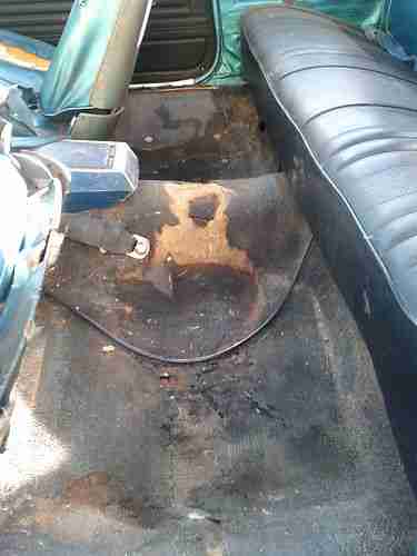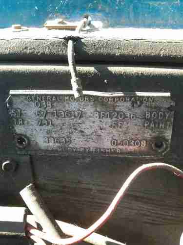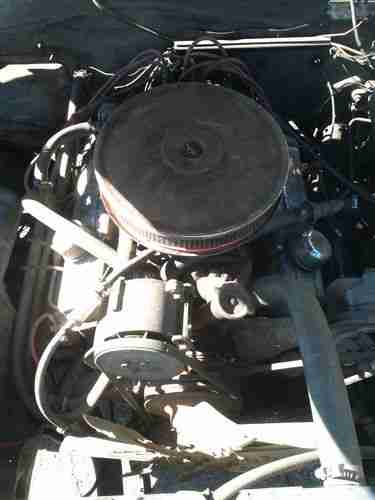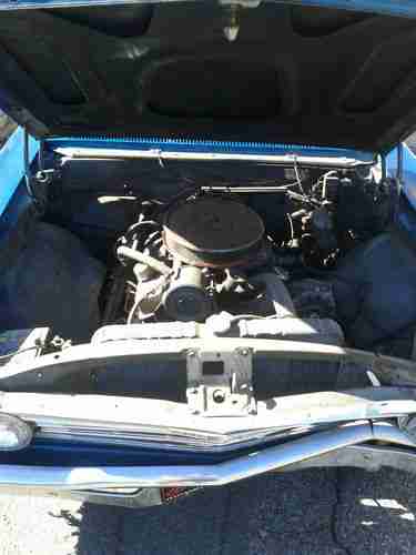 The stock, 327 engine was rebuilt prior to accident and has about 20k miles on it. It has a 4-barrel Rochester Quatra-jet. The original intake was a 2-barrell which is pictured with the extra parts. The 2-speed power glide transmission is in need of work and may have to be rebuilt. Due to the accident, the car cannot shift into park and if started needs to be done in nuetral. (the shifter is mis-alligned)