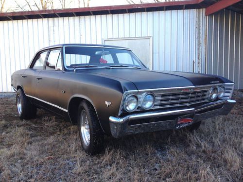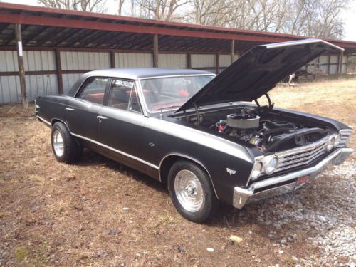 THIS IS TRULY AN OPPORTUNITY FOR A CHEVELLE ENTHUSIAST TO OWN A CLASSIC 1967 CHEVELLE MODIFIED STREET MACHINE AT A PRICE HE OR SHE CAN ACTUALLY AFFORD. FRESH SATIN BLACK FINISH. OLD SCHOOL WELD WHEELS. 383 STROKER ENGINE COUPLED TO A TURBO 350 AUTOMATIC TRANSMISSION. TEN BOLT REAR DIFFERENTIAL. DISC BRAKES. WHO CARES IF IT HAS FOUR DOORS? THE PRICE IS ABOUT 20% OF THE COST OF A TWO DOOR HARDTOP. PERFECT FOR THE BABY BOOMER LOOKING TO HAUL A FEW FRIENDS COMFORTABLY TO CRUISES OR THE HOT ROD POWER TOUR. GO TO THE AD AND CLICK ON THE VIDEO OF THE CAR RUNNING. THIS ISN'T GRANDMA'S GROCERY GETTER. THIS IS A PURPOSE BUILT MODIFIED STREET MACHINE. YOU WON'T FIND ANY OTHER LIKE THIS AT THIS PRICE. SPRING IS HERE. CRUISING SEASON IS JUST WEEKS AWAY. DON'T LET THIS ONE GET AWAY. Most muscle car enthusiasts agree that one of the most iconic models of the era was the Chevelle. Although relatively short lived, the Chevelle was one of GM's most successful name plates. The Chevelle was built on the GM A-body platform, with a somewhat reserved initial offering in the first two years, with the exception of the extremely small run of 200 Z16's in 1965. This all changed for the 1966-1967 model years. 1966 saw a
