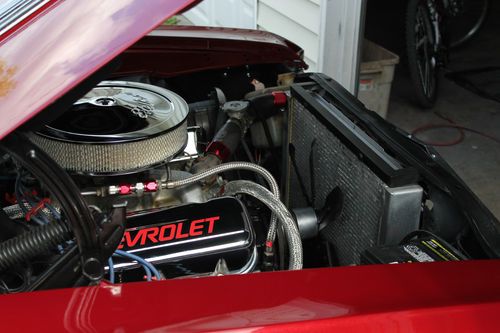 The engine is a 454ci motor. It is actually a 454 block that has been destroked to a 427ci engine for more torque. This is what the previous owner wanted. He is an engine biulder and nows his stuff. The 454 and the 427 shared the same bore size but the 427 has a shorter stroke. The 427 and the 396 share the same stoke so the crank and heads are from a 396. and the intake. 850 holley double pumper and a holley electric full pump and all new fuel lines. The transmition is a built 400 th with a PCI shiftkit. The shifter is an old school hurst slap shifter. The readend is a 12 bolt posi rearend. Headers and new flowmaster 44 mufflers.