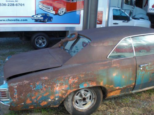 Recently found Marina Blue 67 SS 396, auto, black buckets, 12 bolt, original 396 -325, no trans. Car is rough but restorable or candidate for swap. Have clear NC title. Story is, car was in a race in 1970, ran off the road and got stuck in a ditch. Tried to get it out and spun a rod bearing. Car was parked under a pole barn for 20 years and someone stole the SS hood, so the owner moved the car to his back yard where it stayed for 20 more years. Later found who stole the hood and it was returned. Car has 16,454 actual miles on the speedometer. I have the original numbers matching 396 block, heads and one manifold. We also found the alternator and brackets. As stated the car is rough but numbers and clear title are there. I hate to part it out because then it will be gone. If interested call Roger at Ausleys Chevelle Parts in Graham NC. 336 214 6900 Buyer is responsible for all shipping arrangements. 250.00 deposit required within 24 hours at end of auction.