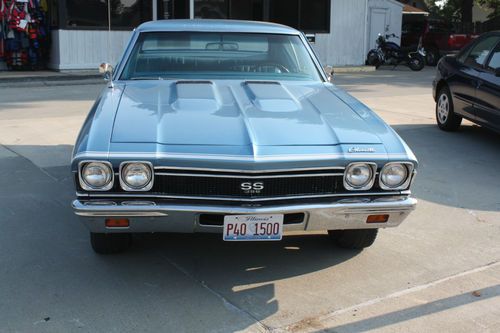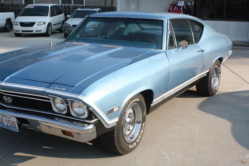 1968 Chevrolet Chevelle SS 396. TH400 transmission. 12-bolt rear end. This is a true Super Sport in original Lagoon Blue with Blue interior. Bucket seats, console with original "u-shaped" shifter. Wood grain steering wheel. Interior in very good condition. Engine is not original to this car, but is a real 1968 396. All trim on car in very good shape. Runs and drives excellent. Please call John (217) 853-4037 with any questions. The car can be seen by appointment in Clinton, IL. Please do not text, I will not respond.