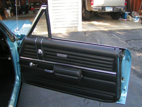1968 SS Chevelle nmn 396 375 hp ,this is a real 138 car grotto blue outside ,black top and interior, frame off resto ,floor pans and frame repainted ,all bushing ,fuel and brake lines replaced. Also have what I believe to be the original engine T1017EG 186106327 casting 3916323 date J-6-7 engine in car was already rebuilt and runs great ,never got around to having the other motor done. The interior is all new Bench seat ,headliner ,door panels ,etc. the only old thing is the seatbelts ,car had two nos fenders put on along with quarter panels replaced ,doors ,hood believe to be original ,from fly wheel back its all original numbers matching m-22 12 bolt 410 rear, also carb ,intake ,radiator all numbers matching. Bumpers are original ,showing some wear, id call them driver quality . 27,500.00call or e-mail 203 592-9744 or gideg4@yahoo.com Note Conn does not title older cars bill of sale only. This car was sold new in Ct believe to be forth owner ,for sale locally reserve the right to end auction any time thanks for looking Gregg