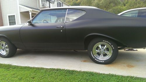 1969 chevelle with a strong running 350, 4 speed, 12 bolt rear. Body work done a year ago. There wasnt any rust on the car, I had it sanded and painted hot rod black which is a single stage paint. The interior is nice but not finished. Seats are new, carpet is new, door panels are new, headliner is new but not secured in place yet, dash pad is new, I have a radio for it that needs to be installed. New tires. New pypes exhaust, new Holley 600, 2" cowl hood. I Still have Malibu hood. I've only had the car for 2 years, I know it was restored 15 years ago by a previous owner, car has no rust on it and can be driven almost anywhere. The rear wheel openings were flared by a previous owner.....what can I say....it wasnt a deal breaker for me and I dont even notice it anymore. Whoever did it, did it well. This car doesn't need much so keep low ball offers to yourself. I have more pictures, I can take more upon demand. Texting or Emailing Pics is easier than trying to figure out how to get them from my phone to the computer so just ask.