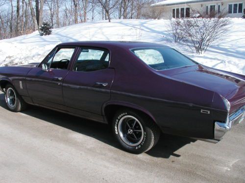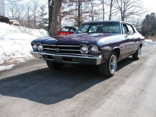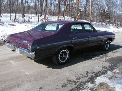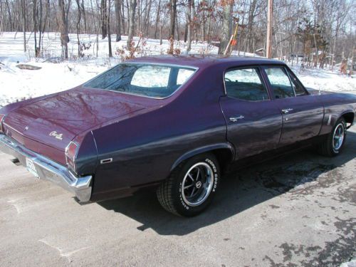 1969 Chevy Chevelle ss 396 clone four door it is extremely nice car especially for a 45 year old car it is very solid, nice older paint job. I was told the bill on it was over 4 thousand dollars and for older paint job it show nice. It has nice set of original SS 396 wheels 1 and fairly new tires. What's nice is the power steering and it does have ac but not working but everything is there just no belt. The car drives out nice and engine runs great has nice set of edelbrock valve covers and air cleaner, this is nice cruiser that needs very little mainly front seat covers and stereo hooked up