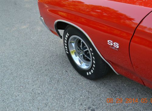 FACTORY CODE "75" CRANBERRY RED CAR 86,090 ORIGINAL MILES PER TITLE AND ODOMETER SUPER STRONG 454 BUILT TO 468 WITH ABOUT 425HP EASY STARTING GREAT RUNNING SMOOTH ENGINE WITH TONS OF POWER WHEN YOU WANT IT...GREAT MOTOR! EDELBROCK ALUMINUM INTAKE NEW QUICK FUEL CARBURETOR ROLLER ROCKERS NICE CAM HEADERS NICE BE-COOL ALUMINUM RADIATOR......NO OVERHEATING ISSUES!! FULL FLOWMASTER STYLE DUAL EXHAUST ALL WAY OUT BACK WITH CORRECT CHROME TIPS TURBO 400 TRANSMISSION POSI REAREND WITH 3.55 GEARS F-41 SUSPENSION......BOXED CONTROL ARMS WITH SWAY BAR POWER STEERING TILT WHEEL 3 SPOKE SPORT STEERING WHEEL POWER DISC BRAKES VERY NICE BLACK BUCKET SEAT INTERIOR EXCELLENT FRONT BUCKETS AND REAR SEAT EXCELLENT CARPET FULL SET OF FACTORY SEAT BELTS EXCELLENT DOOR PANELS EXCELLENT DASH PAD EXCELLENT DASH BEZEL AND GAUGES EXCELLENT FACTORY AUTO CONSOLE WITH FACTORY SHIFTER NEW WEATHER STRIPPING ALL NEW CHROME BUMPERS AND TRIM AND EMBLEMS VERY NICE CORRECT 14" SS WHEELS WITH LETTERED TIRES SUPER SOLID TRUNK FULLY DETAILED WITH SPLATTER PAINT AND SPARE AND JACK AND TRUNK MAT SOLID FLOORS, FRAME AND UNDERSIDE...NICE AND CLEAN SUPER SOLID AND STRAIGHT BODY WITH EXCELLENT FIT AND GAPS....DOORS, HOOD AND TRUNK OPEN AND CLOSE GREAT!! NEW HIGH QUALITY BASE/CLEAR CORRECT CODE "75" CRANBERRY RED PAINT BUFFED MIRROR SMOOTH ......LOOKS SUPER NICE AND SHARP! THIS IS A VERY NICE 1970 CHEVELLE SS 454 WITH AWSOME RUNNING POWERFUL FUN MOTOR, AUTO, F-41 SUSPENSION, PS, PDB, TILT, BUCKETS AND CONSOLE. THR LIGHTS, TURN SIGNALS, WIPERS, HEATER AND RADIO ALL WORK AS THEY SHOULD. COMPLETE TURNKEY CHEVELLE READY TO SHOW AND/OR CRUISE RIGHT AWAY! BE SURE TO CHECK OUT THIS LINK TO MANY MORE DETAILED PICTURES OF THIS CAR :