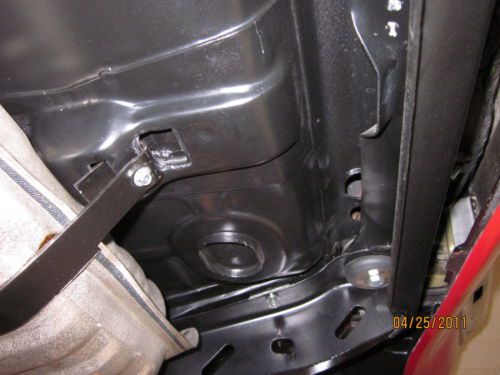 a.      All surfaces of floor pan, differential, frame, front and rear suspension, steering, and brakes are rust-free and not pitted. Floor pans have no undercoating on them and there is no evidence of rust repair other than the RR quarter, inner quarter extension to trunk floor has been repaired.
