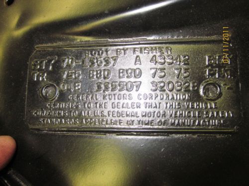 1. Vehicle is truly "numbers matching" i.e., the engine, differential, sheet metal, VIN tag, Cowl tag are close items installed by GM when vehicle was assembled at the Atlanta Georgia Assembly Plant.