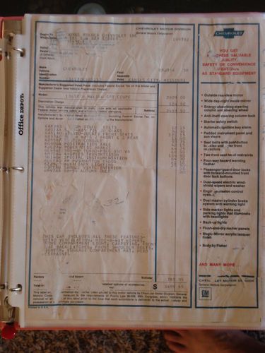 70 red chevelle window sticker ac very solid # match 350 auto ps 2 owner 67 69