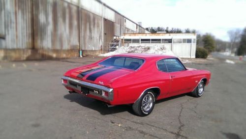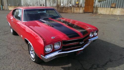 Up for sale is a 1970 Chevelle SS 454-450 hp LS6. Complete SS package including factory cowl induction hood that works flawlessly. 6500 redline tachometer, bucket seats, M-22 Rock Crusher transmission, 12 bolt posi 4-11 rear end, Heavy Duty rear trailing arms, rear sway bar, Heavy Duty front sway bar,power disc brakes. All SS exterior trim with stripes. Original color red with black interior. Originally a Texas car. No rust, All original factory panels.Car is very straight, Excellent paint, very nice original interior. Everything works. Always a show winner. Runs and drives excellent. No disappointments with this car.. This is an amazing car. It runs perfectly and I have put on about a 1000 miles this year already. No squeaks, no ratlles. Perfectly smooth. I have a very large gathering of receipts back to 1990 on the work that has been done including but not limited to: All new paint Engine refresh Tires Exhaust Interior Glass AND LOTS LOTS MORE (all included in sale) ADDITIONS THIS YEAR: Full royal purple fluids swap.. Synthetic oil for: Transmission, Rear end, Engine Coolant changed Sprak Plugs Pertronix Stock Look electronic distributor installed Pertronix Stock Look wires Holley carburetor rebuilt New air filter New fuel filter Tires balanced
