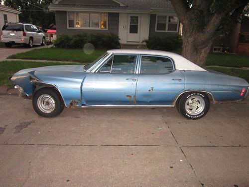 This is a 1971 Chevelle Malibu. This is a project car.There is front end damage to the right side of the car.Front end damage includes driver side fender, front bumper and grill. It has all of the typical rust spots. The car has 72270 miles.It still run's and drives. This is as is when you buy it. Buyer must pick up. This also comes with the original owners manual, shipping paper from the plant and where it was sold. I got the car in hopes to restore it but just don't have the time. I prefer Pay-Pal for payment.
