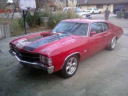 This car has been in the family for many years, here are the specs 1971 Chevelle SS red with black racing stripes., blace leather interior, original chrome.