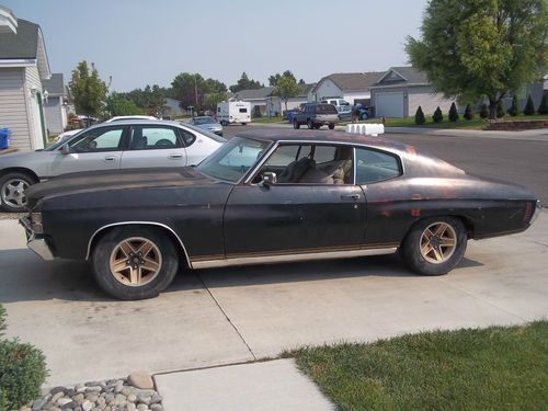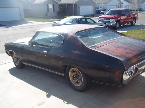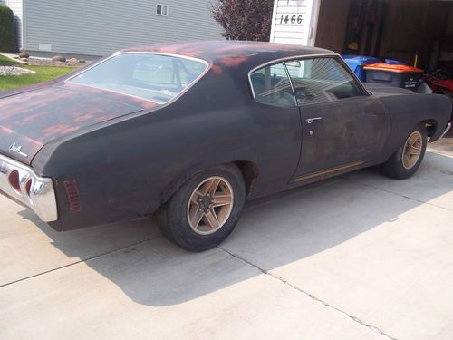 71 CHEVELLE runs and drives. It has a 400 small block, turbo 350 trans., runs good. You can drive while you restore. This car is almost rust free. Frame, trunk pan, floors, trunk rails, and around rear window are all very solid. Very solid car. It has been in a garage for the last 10 years. Factory 350 car. the 400 runs good. This is a running driving project that needs restored. Comes with two brand new after-market front fenders. Right fender has already been put on. It is a A/C car and is all there. Can email more pictures upon request to serious buyers only. THIS IS A PROJECT CAR. NEEDS BODY WORK, PAINT, AND INTERIOR. RUNS AND DRIVES GOOD.
