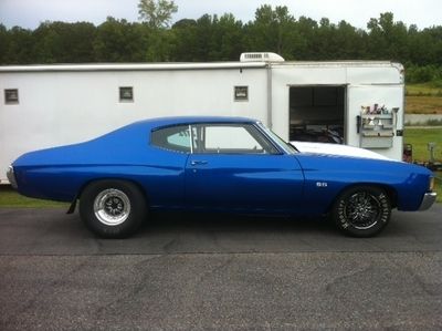 Up for sale is a 1972 Chevelle Malibu. The motor is a small block chevy 383 with AFR aluminum heads and comp roller cam and lifters. The fuel system features an enderle belt drive fuel pump with a Quick Fuel alcohol carb and a adjustable fuel log with a bypass regulator. The motor has a Moroso vacuum pump and is cooled by an aluminum radiator. The transmission is a power glide with a jw bell. The 12-bolt rear end has trailing arms with coil springs, adjustable shocks and an anti-roll bar. The front end has tubular a-arms with QA-1 double adjustable shocks & Wilwood disc brakes. It has an 8-point cage and is easy to get in and out. New Weld V-series wheels. Rear tires are a 275/60-15 Mickey Thompson drag radials. The Chevelle runs 6.60s in the 1/8th of a mile. Very nice car with nice parts. The car is very clean underneath and runs very quiet with full exhaust. The body & paint are gorgeous. The car has a clear title, is not cut up and can be put back on the street very easy. Contact Bryan Robinson 662-279-9522.