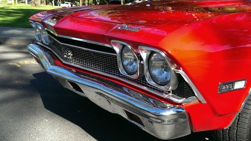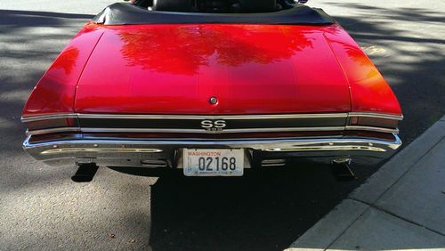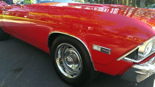 you are bidding on a VERY RARE 1968 true ss big block, factory 4speed, 12 bolt posi ..138 vin!! chevelle convertible!!! this was a frame off, 5 year restore that is beautiful and drives wonderful..this is #327 of 2286 ever made!!! out of all the research i have done there are less then 1200 around!!! this is a matching # 4spd/ 12 bolt car!!! the engine is a 396 non matching # that has been rebuilt and bored with 10.5:1 forged pistons, port and polished 96cc iron heads,roller rockers, comp hyd xtreme cam ( 552 intake/555 exhaust)...edelbrock performance intake,...holley 4150 hp 750 carb....hedman headers...malory unilite dist..crane fireball 6cd ignition w/ rev limiter...vacuum reserve system!!...FRAME...urethane body bushings,.new polyurethane front and rear bushings...boxed control arms..high performance front and rear sway bars (quickor suspension)....2" low profile springs ( quickor)...monroe 3 stage gas shocks......front disk brakes...new brake booster...DRIVETRAIN>>> muncie m21 4spd trans....hurst competetion/plus shifter.....center force clutch.......12 bolt 3,55 posi rearend....BODY.....ppg 1997 torch red..ghost stripe 1997 bright red...INTERIOR>>>>all new by abc quick stitch..the top is also new ...everything has been powder coated, the underside is also show quality!!! has 3" flow masters out the back!!! this is truly a chevelle collectors chance at a hard to find true ss big block 4 spd 12 bolt car, with power steering/brakes, it is a joy to drive! i run this beautiful car on sunny days only and will not heat up over 190deg! car has won many awards, and not another one at the shows..this car is show quality top and bottom, although it is driven/ not trailer queen there are very few/ very minor touch ups...all lights/gauges work as they should...the door buzzer even wrks when door is open (remember those?)..all light switches/ heater/ wipers w/ window juice work also!..dont miss out on this rare find...the nada book on this car is over 80k..my reserve is very low for this rare car..bid with confidence, and have funds ready,...if you have 0 feedback plse message me first!