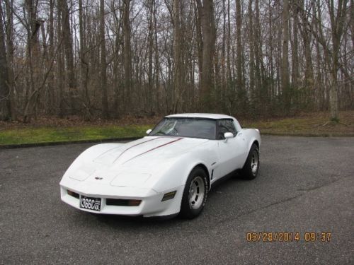 Only 59,600 original miles! matching numbers engine & transmission, 350cid hi-output V8 W/crossfire fuel injection, classic white exterior with red hood strip, red leather bucket seats, cold factory A/C also have mirror removable tops and white fiberglass tops. What a great classic!